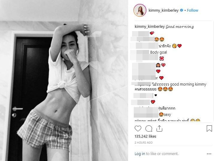ฝั่งพี่ชายคนสนิท หมาก ปริญ เพิ่งโชว์แผ่นหลังไปหมาดๆ วันนี้ฝ่ายน้องสาวคนสนิท คิม คิมเบอร์ลี่ขอ Good morning โชว์กล้ามท้อง แก้เกมพี่ชายบ้าง แหม่….ถ้าน้องจะมามอนิ่งแบบนี้ ทุกคนตายหมดสิคะ น้องงงงงงง